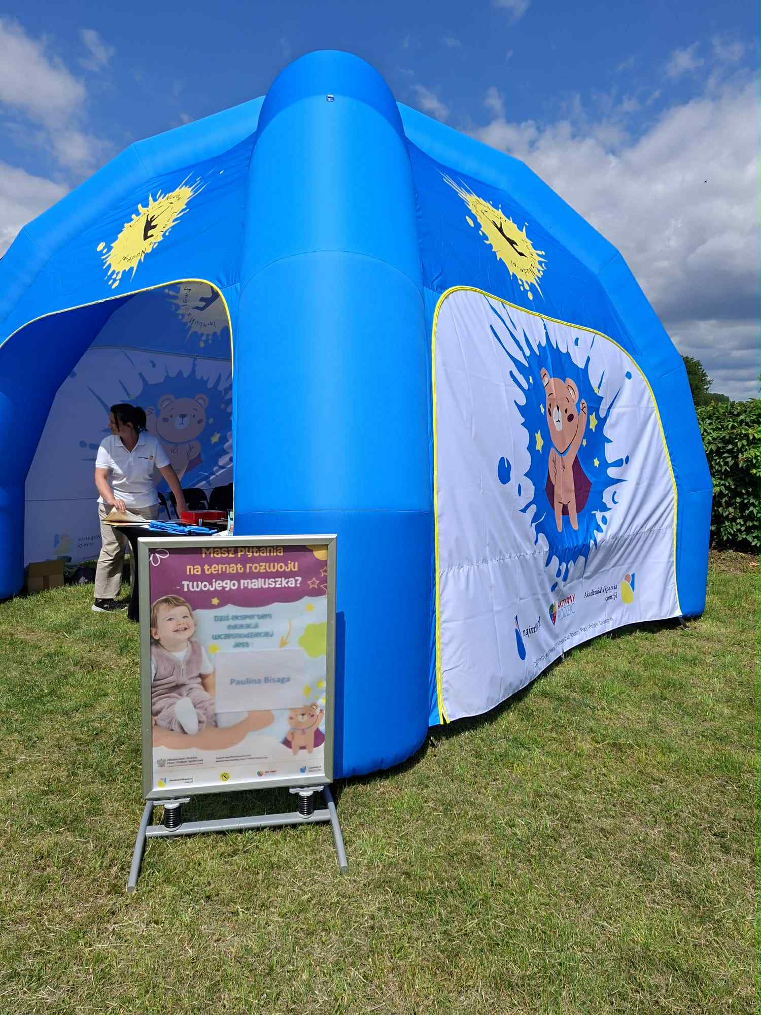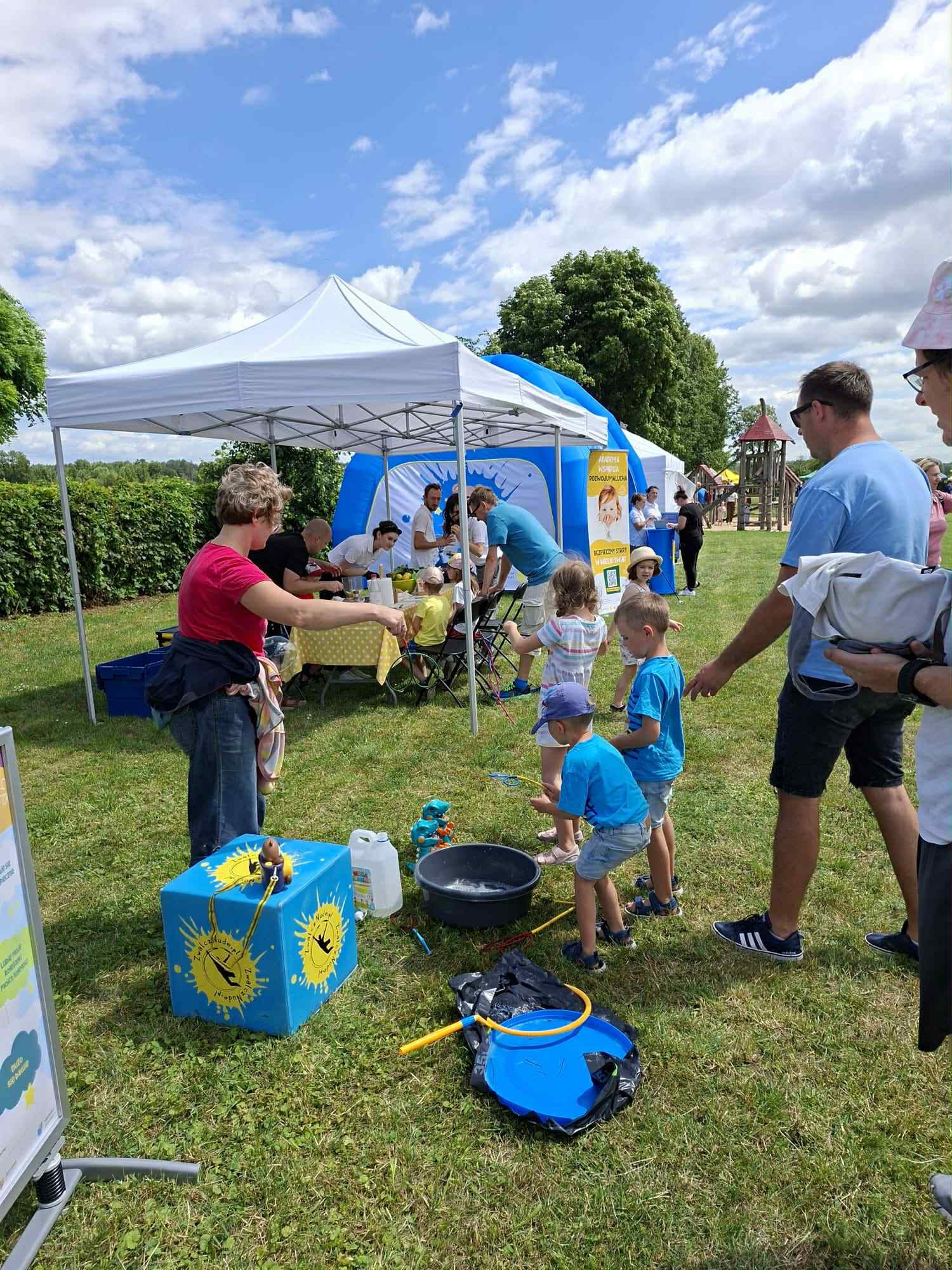 Festiwal Kulinarny “W zamkowej Kuchni” był pełen wrażeń! Od samego rana teren strefy Akademii Wsparcia Rozwoju Malucha tętnił życiem – dzieci biegały między gigantycznymi bańkami mydlanymi, budowały wieże z klocków XXL i szalały na dmuchańcu, a rodzice mogli złapać oddech w przytulnym Kąciku Malucha z komfortową strefą do karmienia i przewijania. Dodatkowo, w naszym punkcie informacyjnym można było zasięgnąć fachowych porad od eksperta od opieki nad maluchami – bo dobre samopoczucie rodziny to nie tylko zabawa, ale i wsparcie.